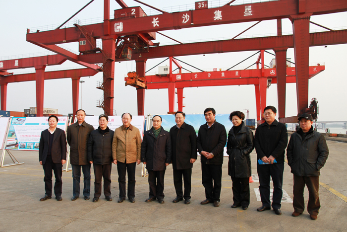 2月10日下午,交通運(yùn)輸部黨組副書記、副部長(zhǎng)翁孟勇一行,在省交通運(yùn)輸廳黨組書記、廳長(zhǎng)賀仁雨,長(zhǎng)沙市委副書記、市長(zhǎng)張劍飛,市政府副市長(zhǎng)何寄華,市政府秘書長(zhǎng)、辦公廳主任唐志浩,市政府副秘書長(zhǎng)嚴(yán)鳳枝,市交通運(yùn)輸局黨委書記朱東鐵,局長(zhǎng)劉明理,副局長(zhǎng)姚仲權(quán)、陳湘,開(kāi)福區(qū)區(qū)委書記張迎春,區(qū)長(zhǎng)凌勤杰等領(lǐng)導(dǎo)陪同下,來(lái)到長(zhǎng)沙新港考察調(diào)研。湖南長(zhǎng)沙新港有限責(zé)任公司董事長(zhǎng)、三期工程建設(shè)指揮部指揮長(zhǎng)石道國(guó),董事、常務(wù)副總經(jīng)理唐忠良,董事趙赤書,副總經(jīng)理張韜,長(zhǎng)沙集星集裝箱碼頭有限公司副總經(jīng)理辛華,總經(jīng)理助理周勇接待。 在長(zhǎng)沙新港集裝箱碼頭上,三期工程建設(shè)指揮部副指揮長(zhǎng)、新港公司副總經(jīng)理張韜介紹了長(zhǎng)沙新港一、二期工程運(yùn)營(yíng)情況,匯報(bào)了三期工程建設(shè)規(guī)模及建設(shè)情況。翁孟勇副部長(zhǎng)強(qiáng)調(diào):長(zhǎng)沙新港變化一次比一次大,當(dāng)前要借助湖南加大水運(yùn)發(fā)展力度的有利契機(jī),加快樞紐、港口和湘江2000噸級(jí)航道提升建設(shè),更好地服務(wù)經(jīng)濟(jì)社會(huì)和航運(yùn)的持續(xù)發(fā)展。 |