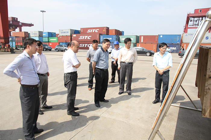 5月21日下午,江西省人大常委會(huì)副主任馬志武,江西省港航管理局副局長(zhǎng)楊禮生,江西省交通運(yùn)輸廳規(guī)劃辦主任劉維文,科長(zhǎng)李競(jìng)等領(lǐng)導(dǎo)一行,在湖南省水運(yùn)管理局局長(zhǎng)、黨委副書(shū)記陳健強(qiáng),黨委成員、總工程師許足懷,辦公室主任張小剛、長(zhǎng)沙市交通運(yùn)輸局副局長(zhǎng)陳湘等領(lǐng)導(dǎo)的陪同下來(lái)長(zhǎng)沙新港考察調(diào)研。湖南長(zhǎng)沙新港有限責(zé)任公司董事長(zhǎng)、總經(jīng)理唐忠良,董事、財(cái)務(wù)總監(jiān)趙赤書(shū),董事、副總經(jīng)理張韜,董事、長(zhǎng)沙集星集裝箱碼頭有限公司副總經(jīng)理辛華等接待。 馬志武副主任一行首先實(shí)地考察了長(zhǎng)沙新港集裝箱碼頭,省水運(yùn)管理局局長(zhǎng)陳健強(qiáng)向馬志武副主任等領(lǐng)導(dǎo)介紹了我省水運(yùn)現(xiàn)狀,港口規(guī)劃及管理情況;新港公司副總經(jīng)理張韜向馬志武副主任等領(lǐng)導(dǎo)介紹了長(zhǎng)沙新港一、二期碼頭貨源、業(yè)務(wù)、運(yùn)營(yíng),及三期工程規(guī)劃、建設(shè)進(jìn)展等情況。 隨后,馬志武副主任一行來(lái)到集星公司總調(diào)度室,集星公司副總經(jīng)理辛華向領(lǐng)導(dǎo)們?cè)敿?xì)介紹了集星公司先進(jìn)的海渤碼頭管理系統(tǒng),辛總介紹,整個(gè)集裝箱碼頭的運(yùn)營(yíng)和調(diào)度,都靠這套系統(tǒng)來(lái)管理和操作。 馬志武副主任指出,湖南這些年經(jīng)濟(jì)發(fā)展迅速,強(qiáng)大的水運(yùn)網(wǎng)絡(luò)給予了湖南對(duì)外經(jīng)濟(jì)發(fā)展強(qiáng)大的支持,長(zhǎng)沙新港碼頭地理位置優(yōu)越,硬件設(shè)施完備,港口規(guī)劃及管理科學(xué)有序,集裝箱碼頭管理系統(tǒng)十分先進(jìn),這些都是江西港航系統(tǒng)需要學(xué)習(xí)的。馬志武副主任強(qiáng)調(diào),江西是湖南的鄰省,要進(jìn)一步加強(qiáng)兩省經(jīng)濟(jì)和文化的交流,促進(jìn)兩省經(jīng)濟(jì)共同發(fā)展,實(shí)現(xiàn)共贏。