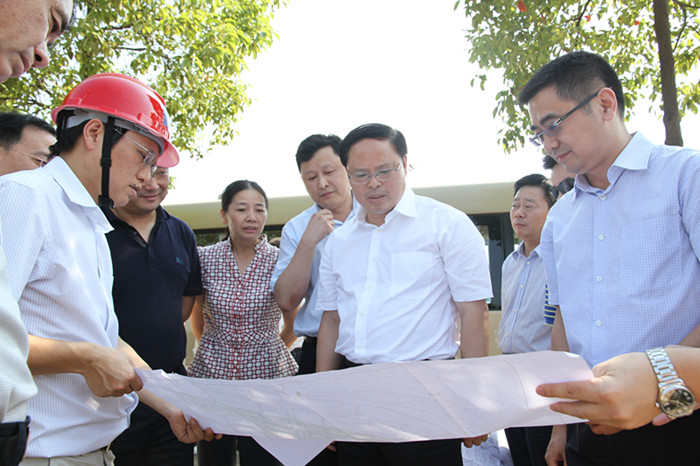 圖為市委副書記、市人民政府市長(zhǎng)張劍飛實(shí)地考察長(zhǎng)沙新港三期工程配套開(kāi)發(fā)用地。