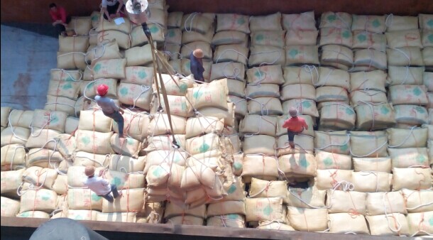 2014年10月15日,一艘名為“皖江貨8888號”貨船裝載豆粕運(yùn)抵長沙新港件雜貨物碼頭。該船貨物是中海糧油湖北武漢新煉油生產(chǎn)廠家針對現(xiàn)在勞動力緊張, 節(jié)省人力成本而特意改進(jìn)裝卸工藝的技術(shù)革新項(xiàng)目,即出廠時,就將所有單包裝豆粕全部裝在網(wǎng)絡(luò)里,然后再裝船發(fā)運(yùn),到目的港口卸載時, 只需將網(wǎng)絡(luò)集合放入吊鉤便可起吊。 以前,來自長江下游在江陰、南通、張家港等裝運(yùn)豆粕的船舶運(yùn)進(jìn)長沙新港,都是按50—70公斤重一袋的單包裝運(yùn)輸?shù)指。裝卸時,裝卸工人要從數(shù)米深的船艙里, 靠雙人一組用人力將單包裝豆粕搬抬包、堆碼到網(wǎng)絡(luò)中,再起吊裝上汽車。每次只能吊2噸,一個臺班僅能完成裝卸300噸左右。這種傳統(tǒng)裝卸,勞動強(qiáng)度大,效率低,勞動力需求量大。 此次,中海糧油開始試用的改進(jìn)裝卸工藝,裝卸時,裝卸工只需將4個網(wǎng)絡(luò)集合,繩環(huán)串掛上 “S”型鉤子,便可輕松完成裝卸。每次能吊3噸,一個臺班能完成裝卸600噸左右,臺班操作量翻2倍以上。網(wǎng)絡(luò)由收貨方回籠,可重復(fù)使用。改進(jìn)裝卸工藝后,既省工,又省時,卸船速度加快,徹底告別了人力搬抬包裝貨物的歷史。 據(jù)廠家負(fù)責(zé)人介紹,該工藝仍在研究改進(jìn)過程中,以后效率將更大,更有利于節(jié)約物流成本。 |