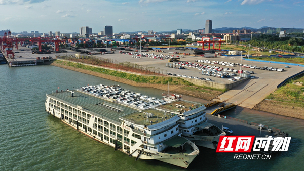 長沙新港滾裝碼頭汽車滾裝正在作業(yè)。(覃翊  攝)
