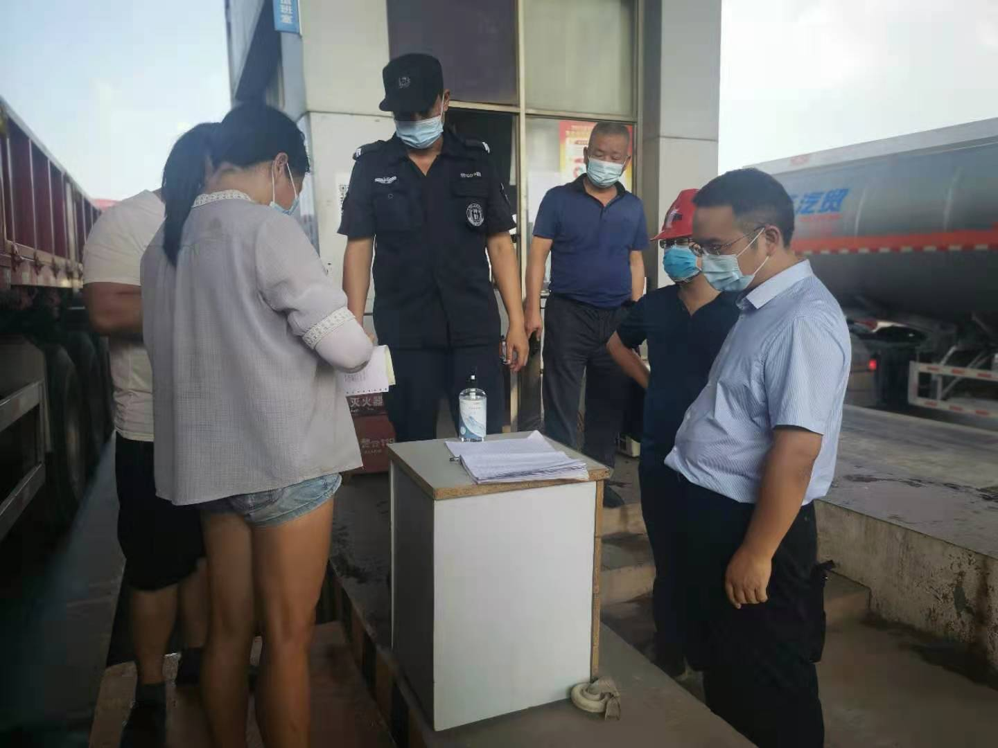 劉俊武督導(dǎo)檢查新港疫情防控工作 8月2日下午,長沙交通集團黨委副書記、董事、總經(jīng)理劉俊武一行到湖南長沙新港有限責(zé)任公司檢查指導(dǎo)碼頭安全生產(chǎn)和疫情防控工作。集團黨委委員、副總經(jīng)理龍伏波,集團辦公室主任李明華及新港公司主要負責(zé)人陪同督導(dǎo)檢查疫情防控工作。 劉俊武先到碼頭閘口處檢查疫情防控措施落實情況,對于碼頭進出疫情防控措施的落實細節(jié)進行檢查,翻閱了消毒記錄本及過往司機綠碼登記情況。  他現(xiàn)場了解聽取了碼頭安全環(huán)保作業(yè)措施,以及疫情期間船舶管控情況,新港公司黨委書記、董事長唐忠良匯報公司疫情防控工作:公司7月29日召開防疫工作專題黨委會,采取查健康碼、行程碼、量體溫、登記、線上報港等措施,截斷從水上、路上疫情傳播的通道,加強落實現(xiàn)場消毒和人員排查工作,并為作業(yè)人員配備口罩、手套、護目鏡等必要的防護用品。同時安排采購體溫測量儀,對中風(fēng)險崗位進行核酸檢測,要求員工進一步加大疫苗普及率,打好港口疫情保衛(wèi)戰(zhàn)。針對高溫天氣作業(yè),公司做好了防暑降溫措施,各單位、各部門不斷增強安全生產(chǎn)、工程建設(shè)、疫情防控責(zé)任意識,筑牢疫情防控保護墻,為客戶提供安全穩(wěn)定的生產(chǎn)環(huán)境。
