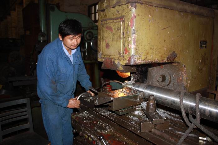 楊建安同志從來都是碰到越有難度的加工活,他越有興趣,越喜歡從中摸索,敢于接受任何技術上的挑戰(zhàn),這次也不例外。通過對需維修設備的了解和初步分析,他想出了最簡單、最快捷的拆裝方法,用最短的時間將已經(jīng)斷裂的傳動軸拆除了出來。他充足的干勁、熟練的操作都感染著在場所有的人。只見他認真地挑選好材料毛坯,細致地磨好所需刀具,一絲不茍、聚精會神,干起活來。在他的精心操作下,經(jīng)過兩個多小時搶制,新的傳動軸加工出來了,且規(guī)格和標準都符合裝配要求,在場的所有人才放心地松了口氣。