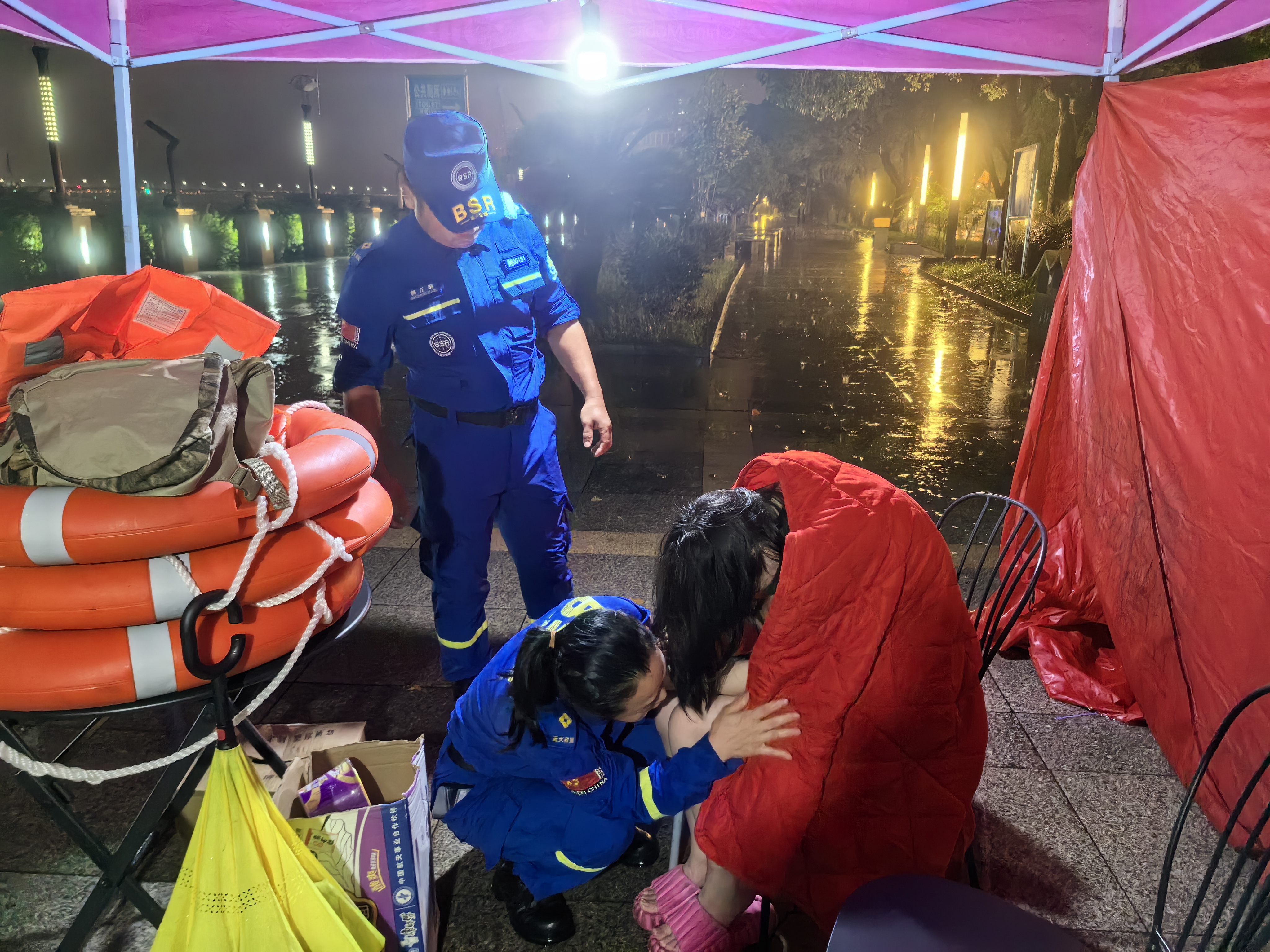 6月30日凌晨2:15,長(zhǎng)沙新港公司員工、藍(lán)天救援隊(duì)志愿者向灼平,在湘江大堤執(zhí)行防汛巡查任務(wù)時(shí),發(fā)現(xiàn)一名渾身被雨淋透、邊哭邊發(fā)抖的女孩欲跳江,她急忙攔下女孩,并和同事一起將其帶回執(zhí)勤點(diǎn)安撫。