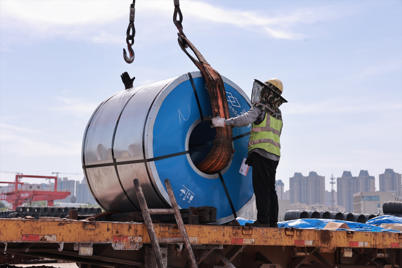 炎炎夏日,長沙新港人不畏高溫,通力合作,奮戰(zhàn)在生產(chǎn)第一線,單船作業(yè)指揮員伍賢文、裝卸工李友明現(xiàn)場指揮鋼材裝卸,保障貨物物流安全高效穩(wěn)定。