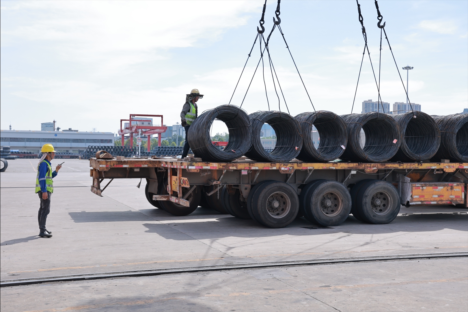 烈日下,一臺臺吊車有條不紊地運作,來往的貨車絡(luò)繹不絕,貨物井然有序地擺放在相關(guān)區(qū)域,等待裝船下河。這幾天,集中鐵水聯(lián)運漣鋼工業(yè)鋼材裝船,萍鋼盤螺公水聯(lián)運裝船,平均每日鋼材作業(yè)6000噸。