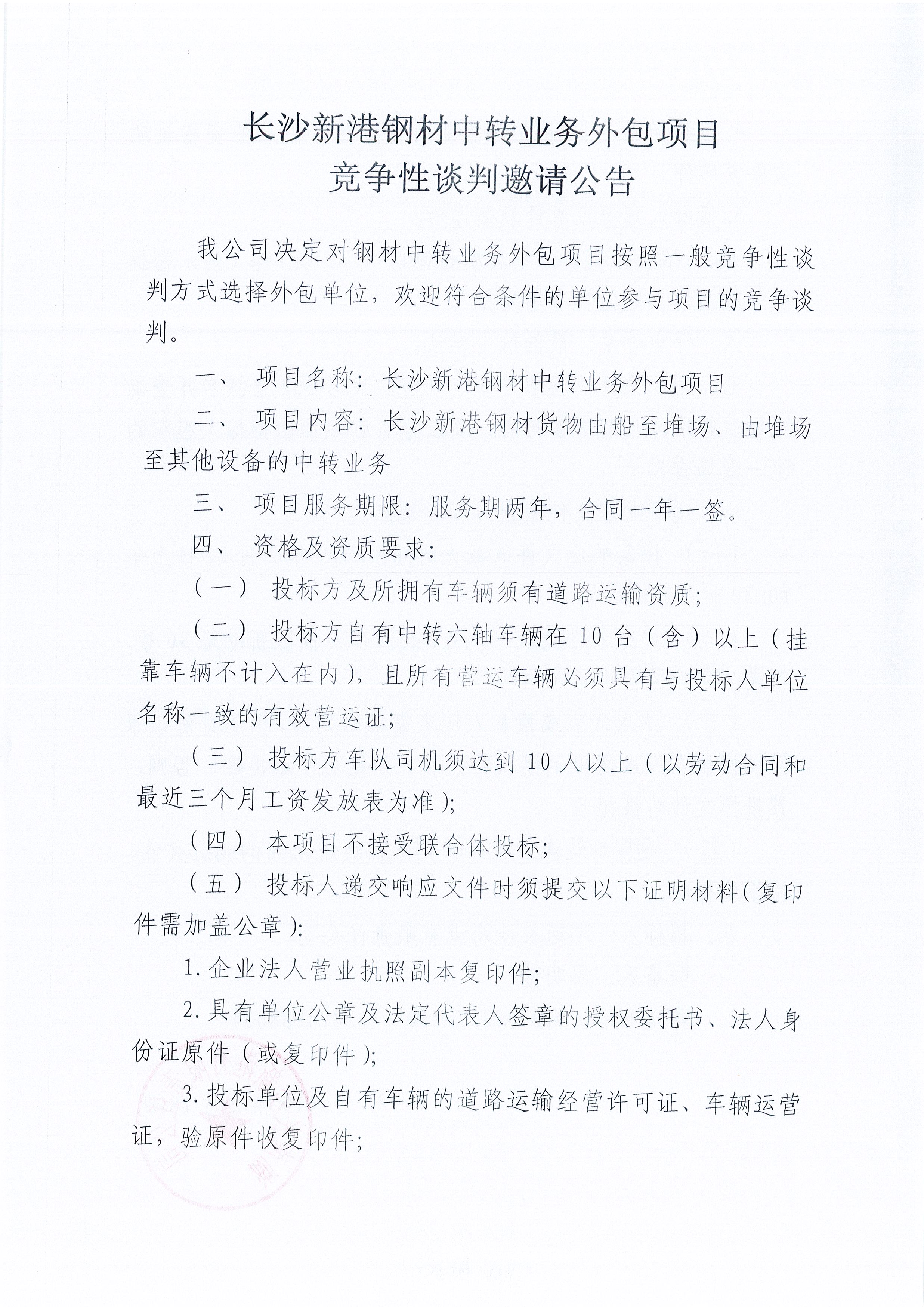 長沙新港鋼材中轉業(yè)務外包項目競爭性談判邀請公告