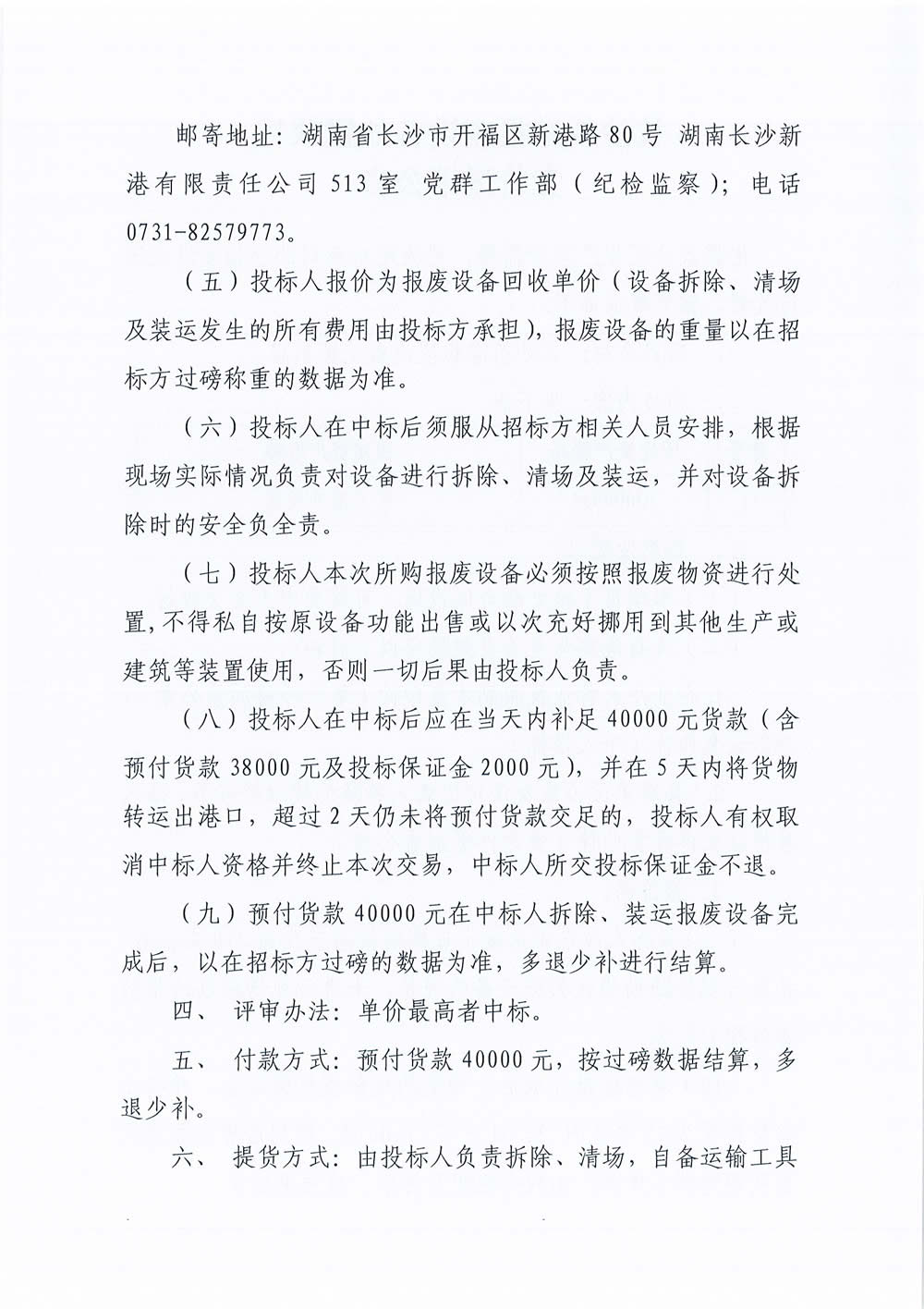 長(zhǎng)沙新港報(bào)廢設(shè)備處置項(xiàng)目競(jìng)價(jià)邀請(qǐng)公告