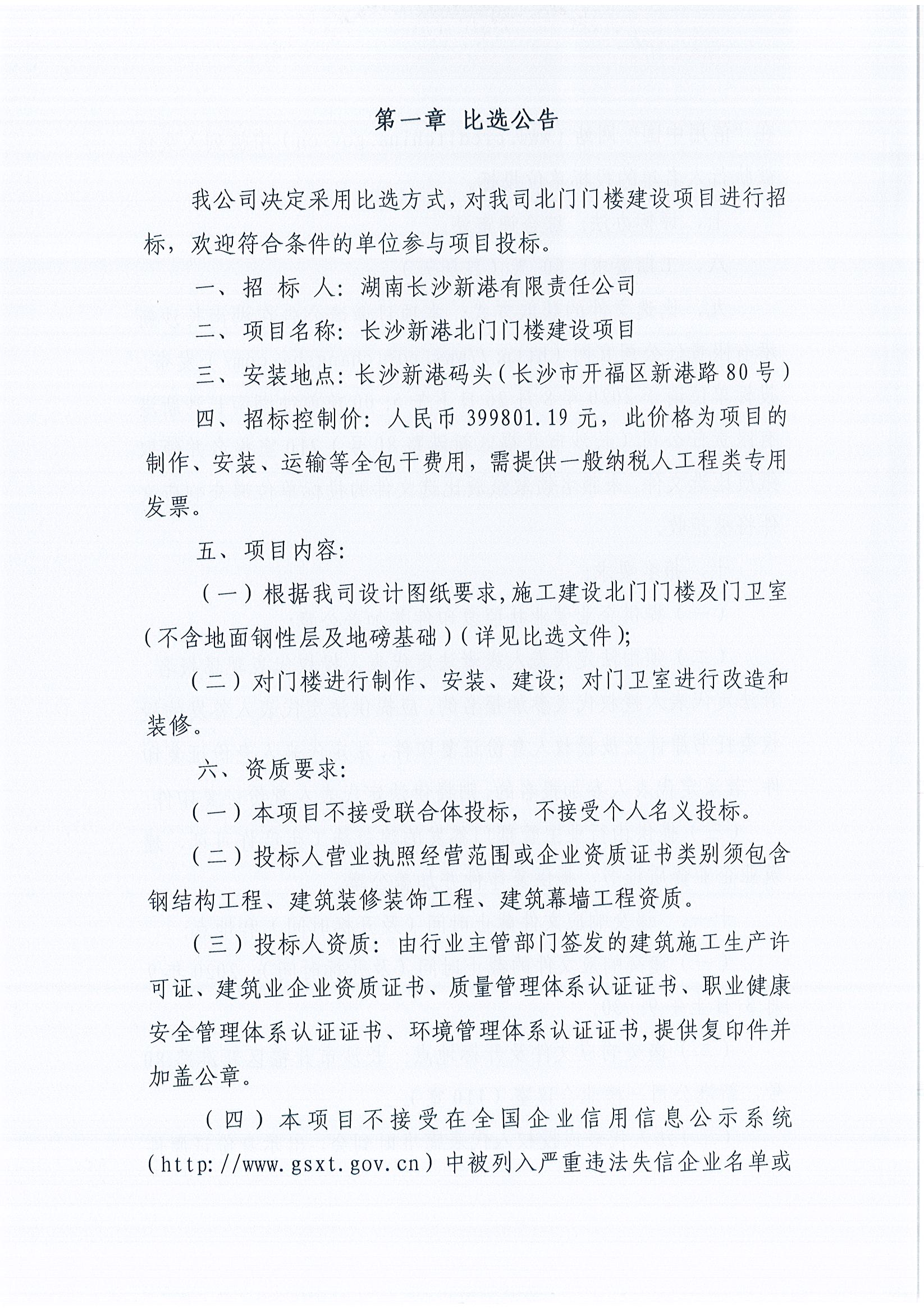 長沙新港北門門樓建設(shè)項目《比選公告》