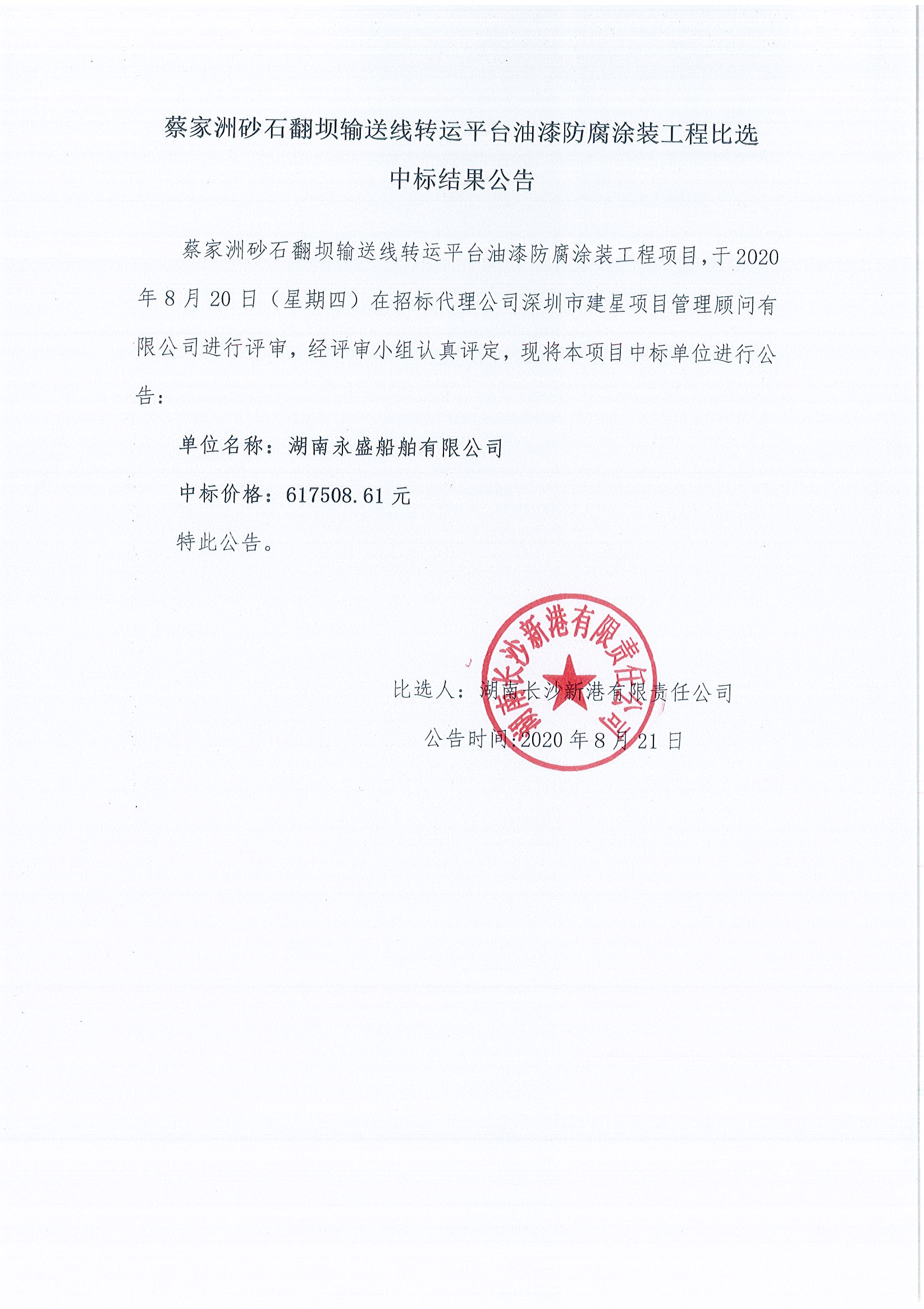 蔡家洲砂石翻壩輸送線轉(zhuǎn)運平臺油漆防腐涂裝工程比選中標(biāo)結(jié)果公告