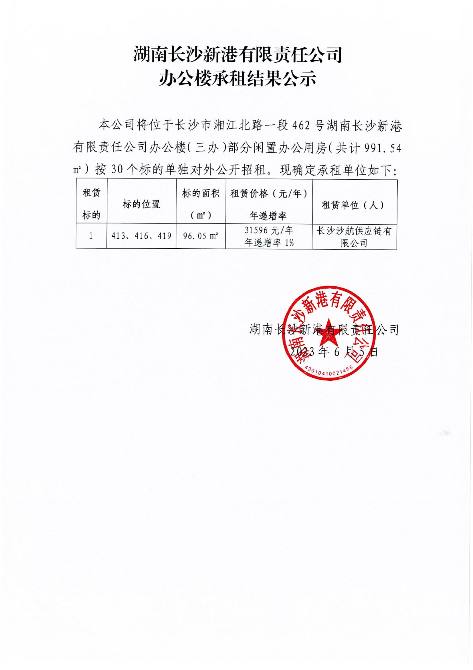 新港公司辦公樓承租結(jié)果公示