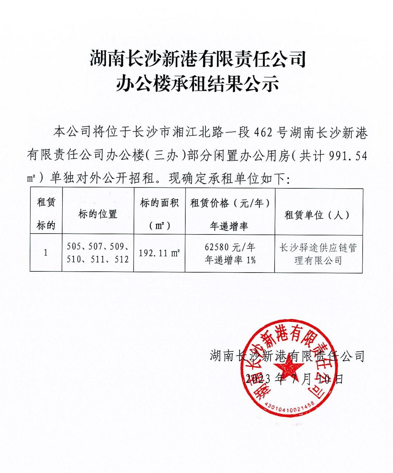 湖南長沙新港有限責(zé)任公司辦公樓承租結(jié)果公示