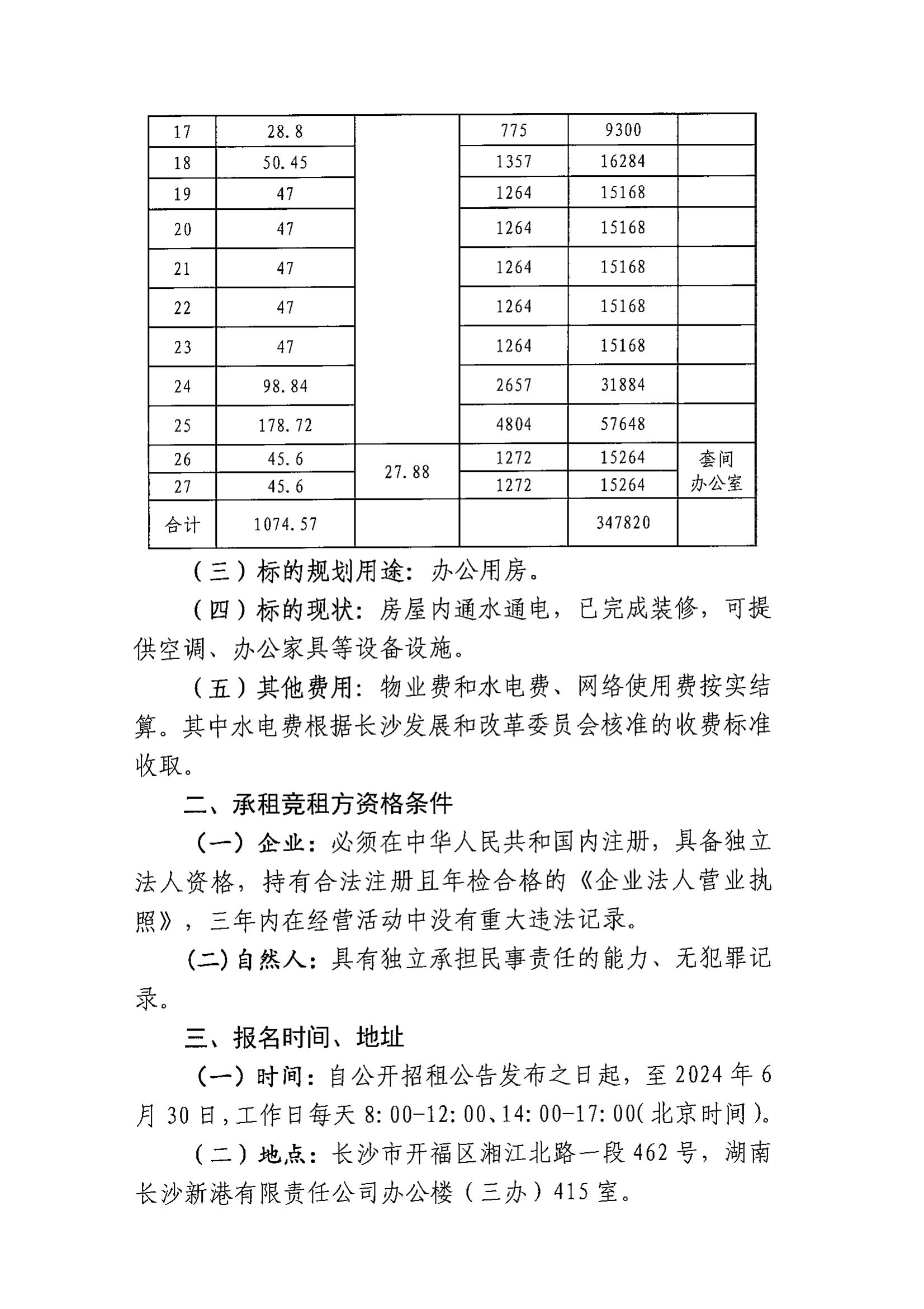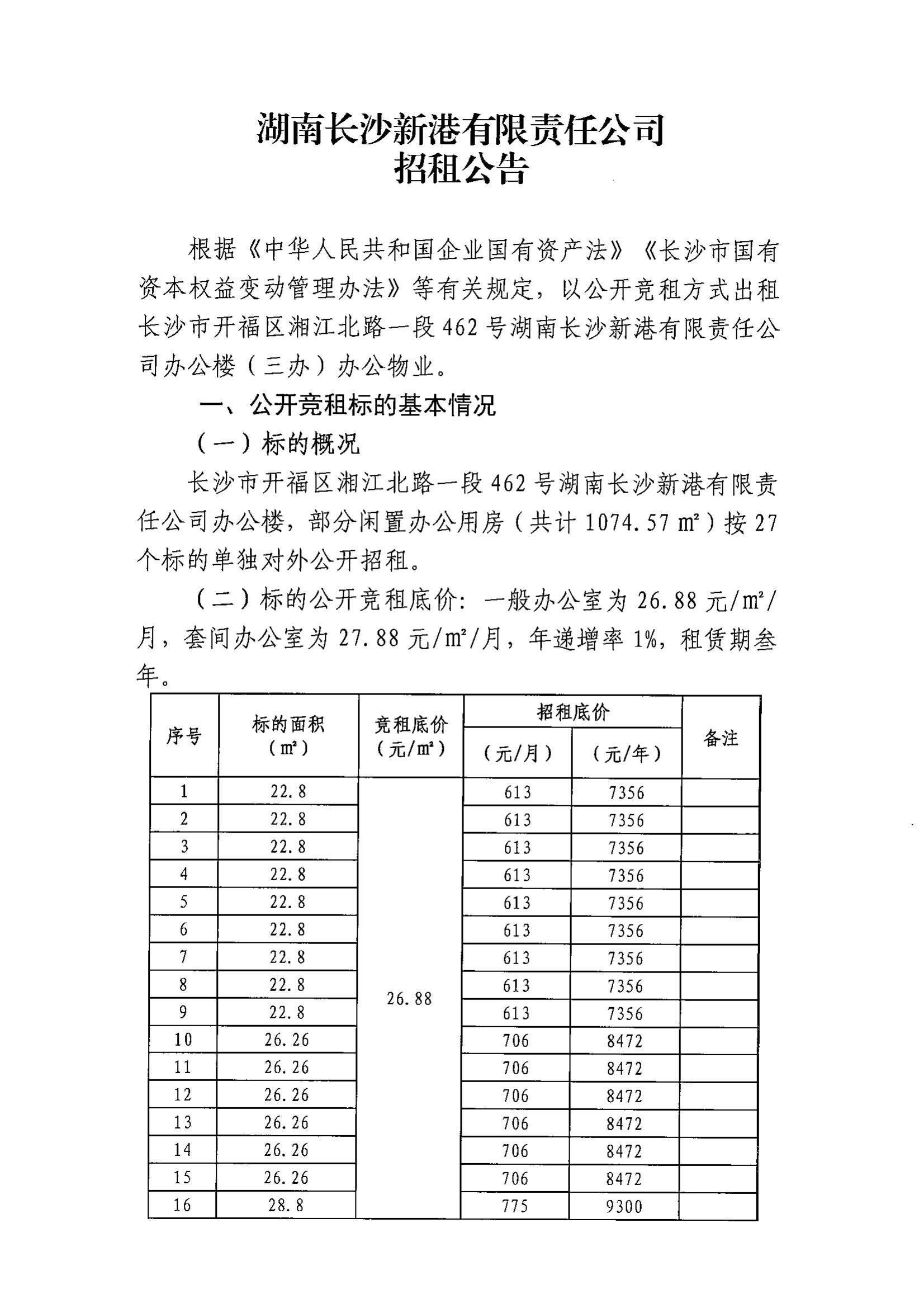 湖南長沙新港有限責任公司招租公告