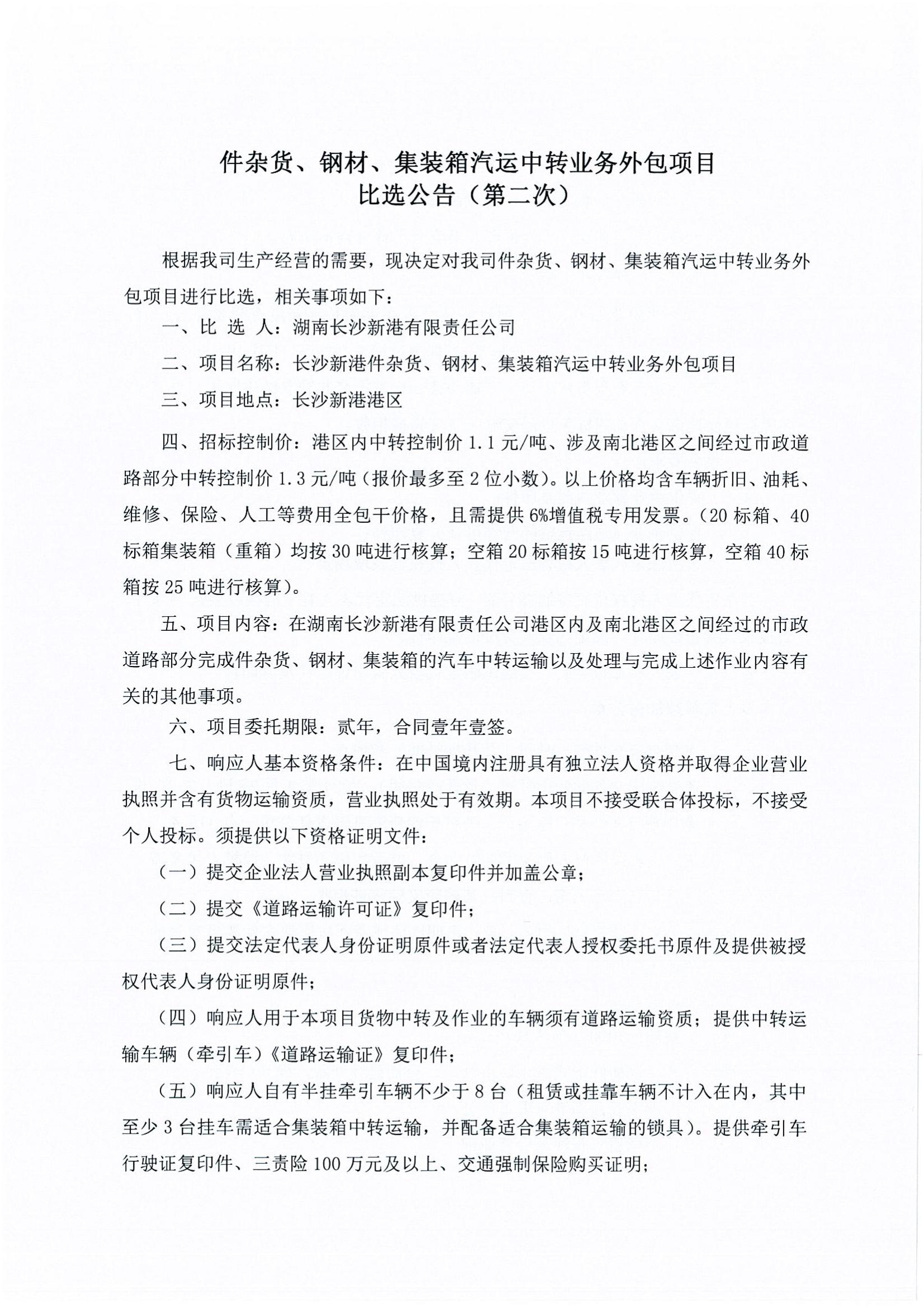 件雜貨、鋼材、集裝箱汽運(yùn)中轉(zhuǎn)業(yè)務(wù)外包項(xiàng)目比選《比選公告(第二次)》