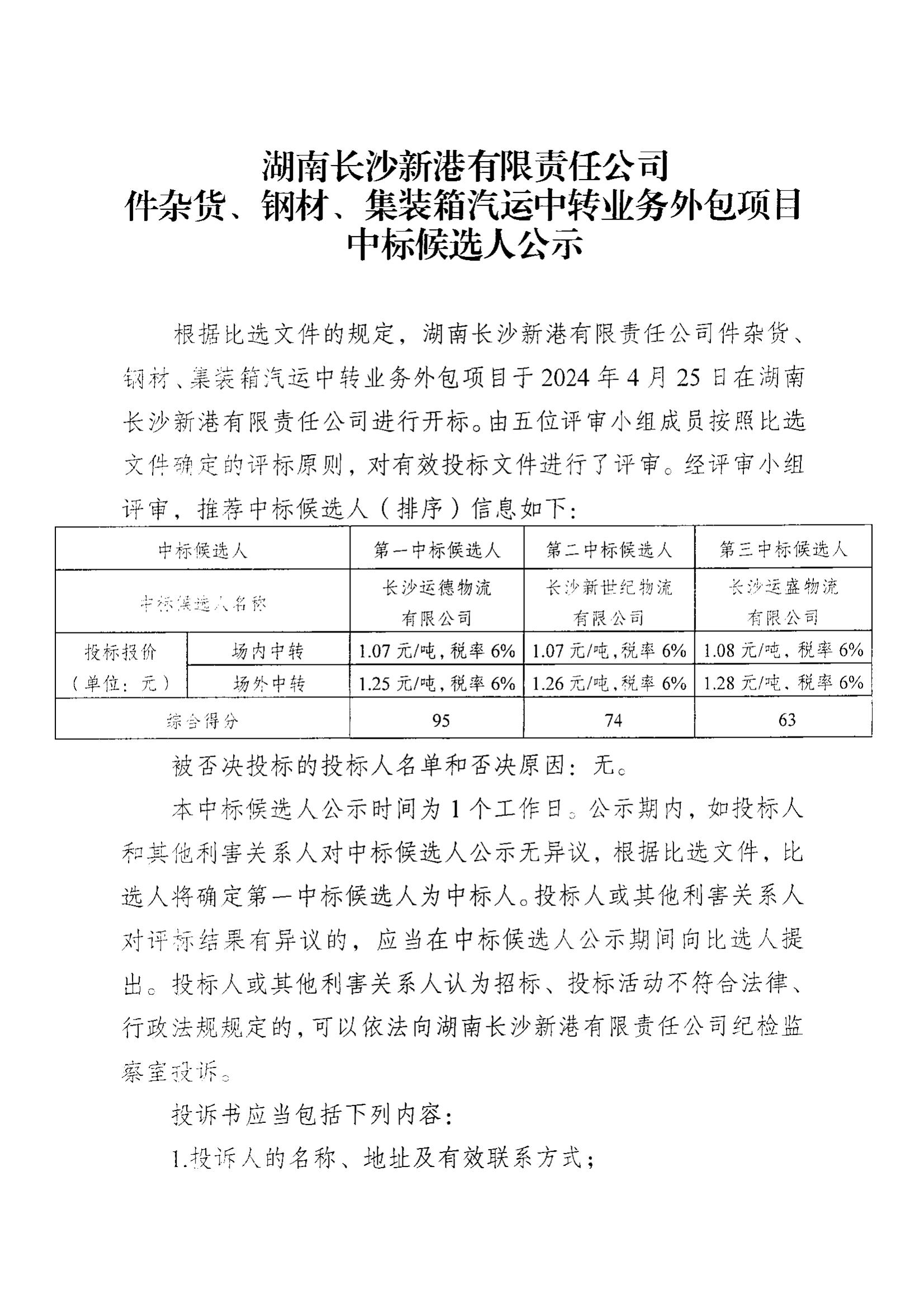 件雜貨、鋼材、集裝箱汽運中轉(zhuǎn)業(yè)務(wù)外包項目中標候選人公示